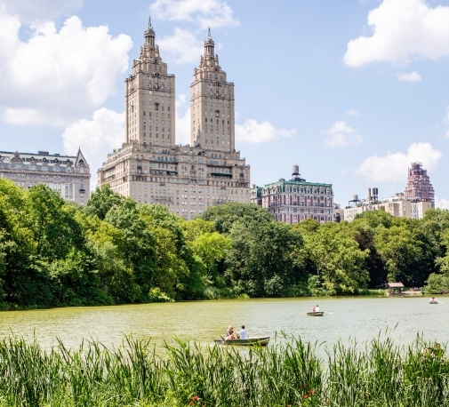 Often referred to as New York City, to distinguish it from the state in which it resides, or just “the city” to locals, New York comprises hundreds of distinct neighborhoods spread among its five geographic boroughs — Manhattan, Brooklyn, the Bronx, Queens, and Staten Island. Manhattan, the 23-square-mile island anchored by the Hudson and East Rivers, is the business, tourism, and entertainment hub of the city, as well as home to numerous quiet residential neighborhoods. In its geographic center lies the 843-acre Central Park, home to walking and biking paths, a lake, thick woods, sports fields, an ice-skating rink, zoo, nature sanctuary, carousel, outdoor theater, a castle, and the Jacqueline Kennedy Onassis Reservoir. Fun fact: Central Park is the most filmed park in the world!